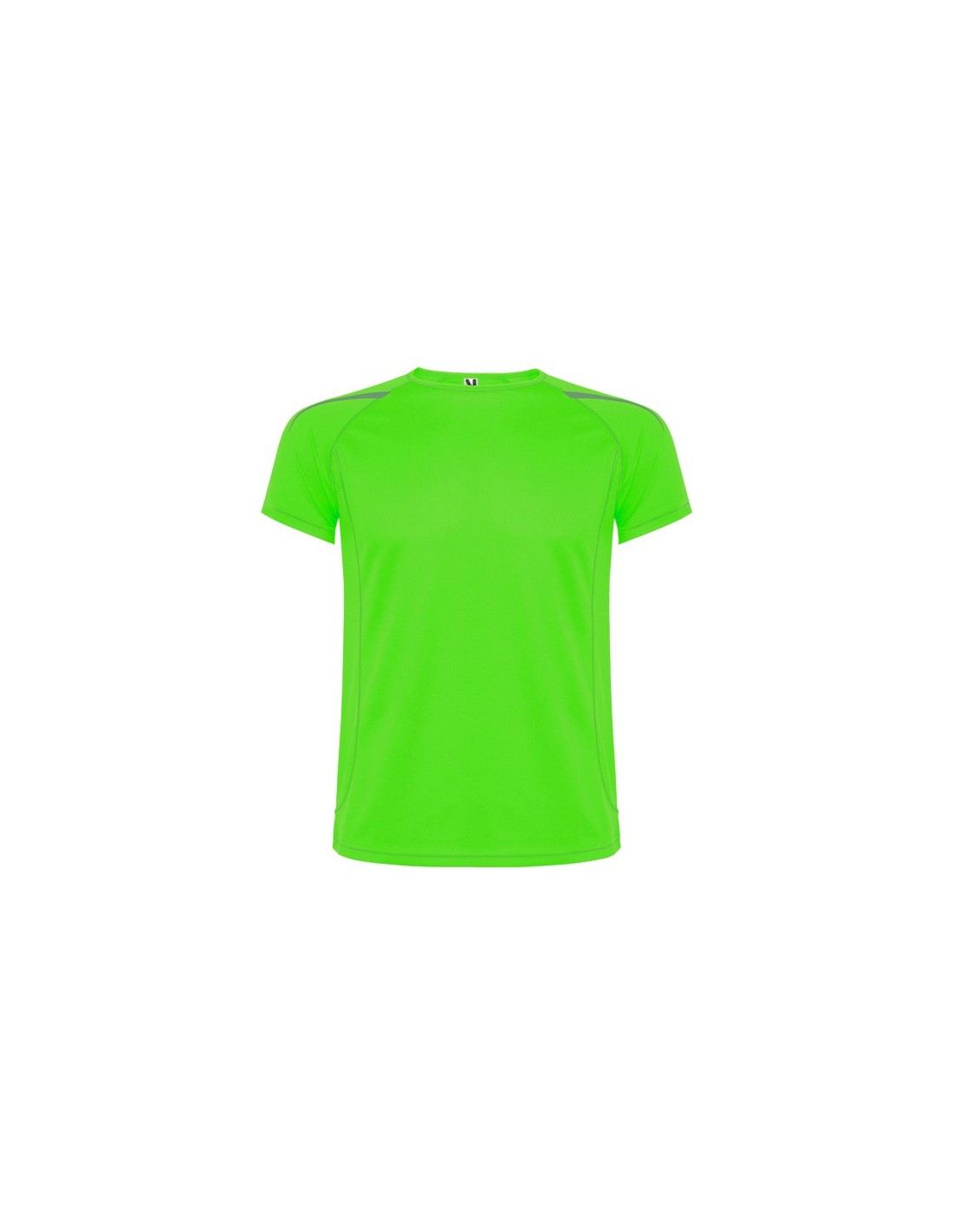 Camiseta técnica en tejido punto liso, de manga corta ranglán, con costuras en contraste en bocamangas, bajo, cuello y laterales. Cuello viveado con el mismo tejido. Tejido transpirable de fácil lavado y secado. Detalles reflectantes, excepto en colores negro y royal, que el detalle es en contraste en color amarillo, no reflectante.