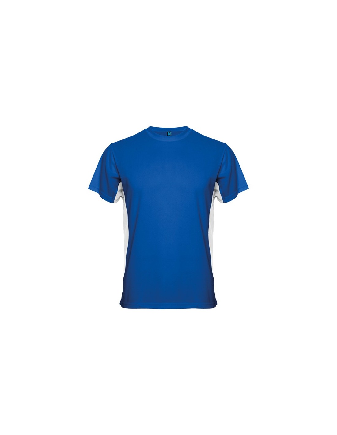 Camiseta técnica de manga corta transpirable. Cuello redondo con cubre costuras a tono. Tejido de fácil secado. Combinación de colores, paneles laterales a contraste.