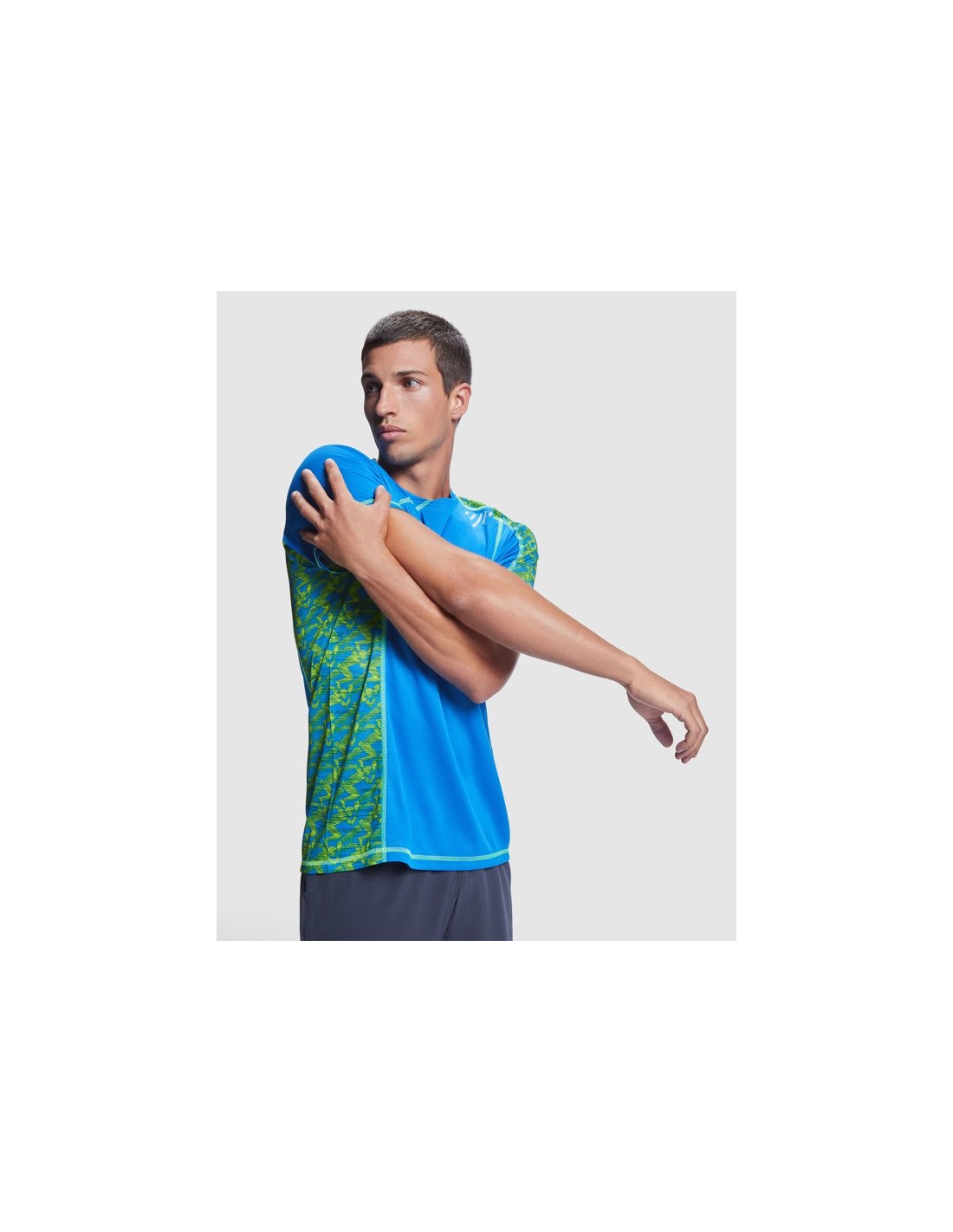 Camiseta técnica de manga raglán con paneles sublimados. Poliéster Reciclado CONTROL DRY. Remallado en flúor (excepto color blanco 183). Detalles reflectantes y faldón trasero. Etiqueta identificativa logo ECO en manga.