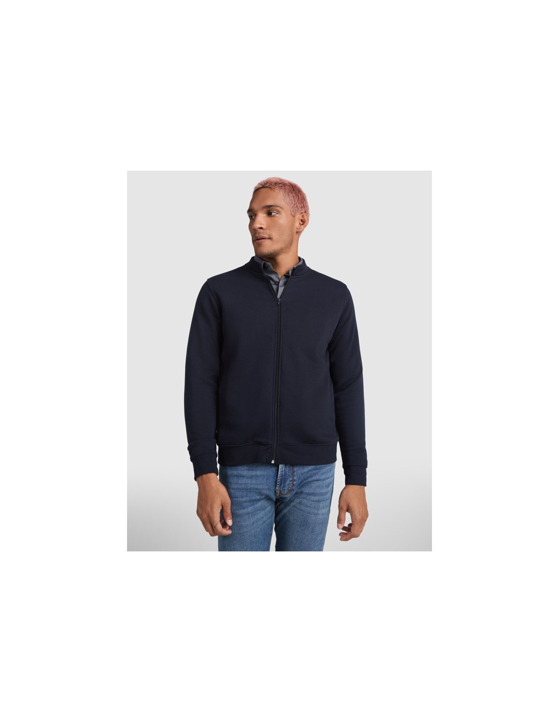 Sudadera de felpa perchada de manga larga con cuello Mao. Cubrecosturas reforzado en el interior del cuello. Cremallera central con tirador al tono. Bolsillos laterales. Punto canalé 1x1 en puños y cintura.