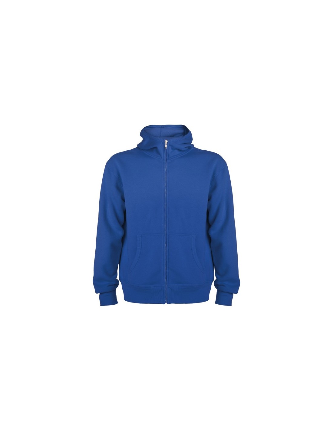 Chaqueta con capucha, cuello alto y cremallera completa. Detalle canalé en contorno capucha y bolsillos. Bolsillo estilo canguro. Punto canalé 2x2 en puños y cintura.