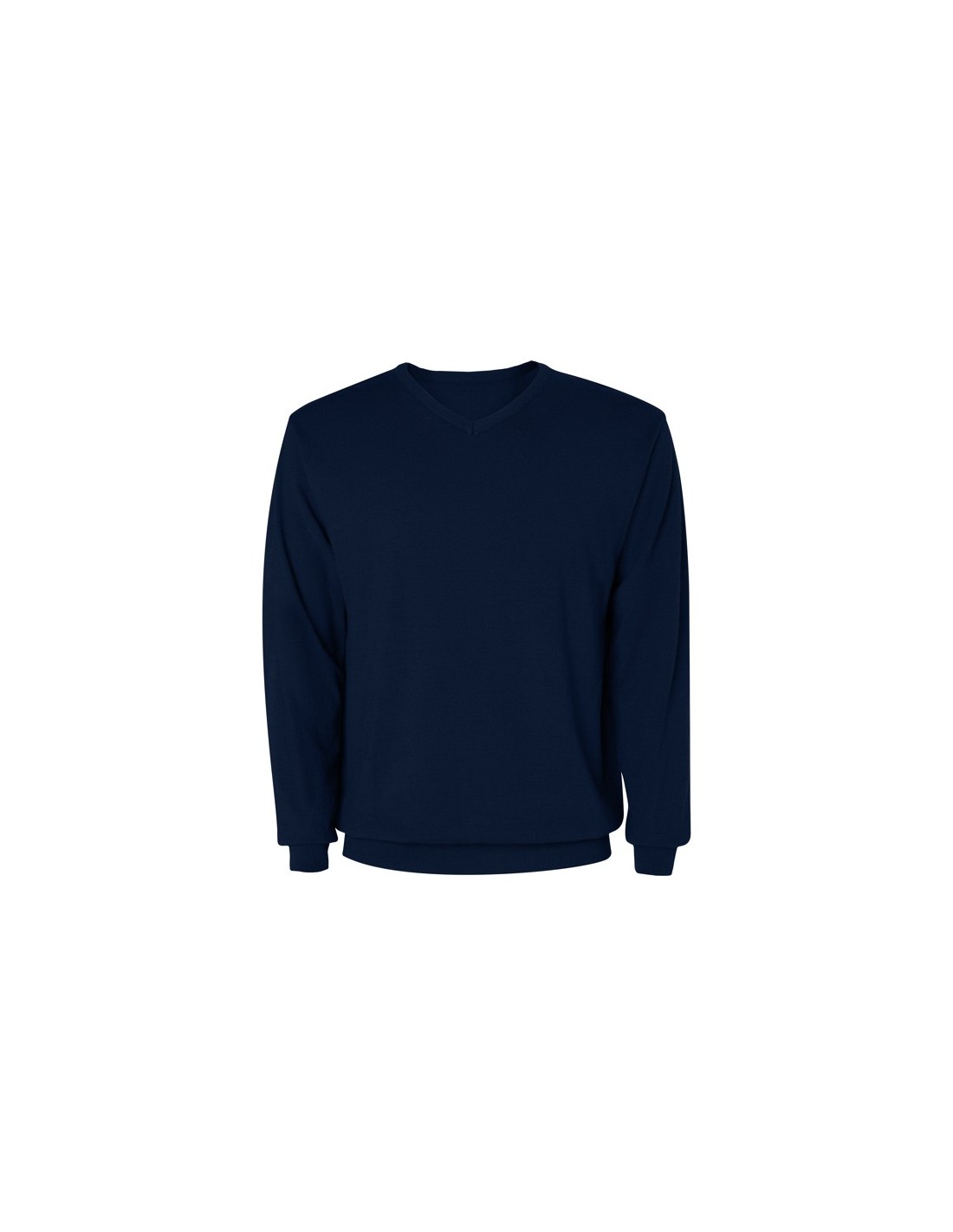 Jersey para hombre con escote de pico en punto fino. Acabado en punto de canalé 1x1 al tono en escote, puños y bajo.