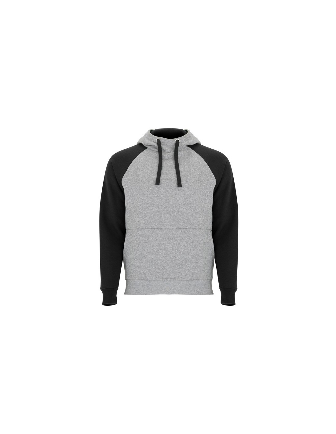 Sudadera bicolor unisex. Capucha con cuello cruzado y ojales metálicos, interior y cordones a contraste. Manga estilo ranglán a contraste. Bolsillo canguro. Puños y bajo con punto canalé con elastano 1x1.