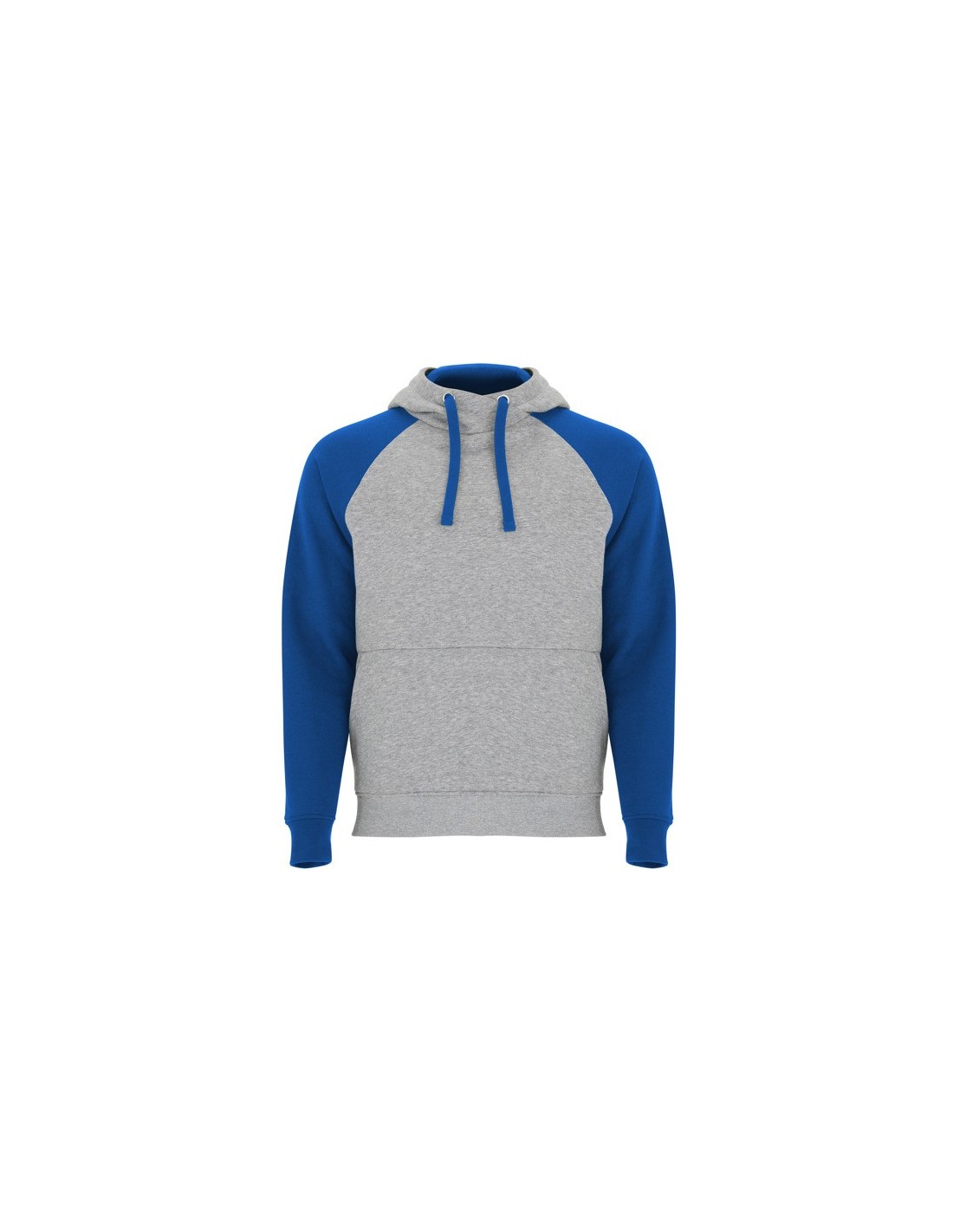 Sudadera bicolor unisex. Capucha con cuello cruzado y ojales metálicos, interior y cordones a contraste. Manga estilo ranglán a contraste. Bolsillo canguro. Puños y bajo con punto canalé con elastano 1x1.