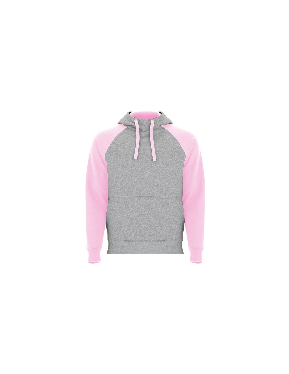 Sudadera bicolor unisex. Capucha con cuello cruzado y ojales metálicos, interior y cordones a contraste. Manga estilo ranglán a contraste. Bolsillo canguro. Puños y bajo con punto canalé con elastano 1x1.