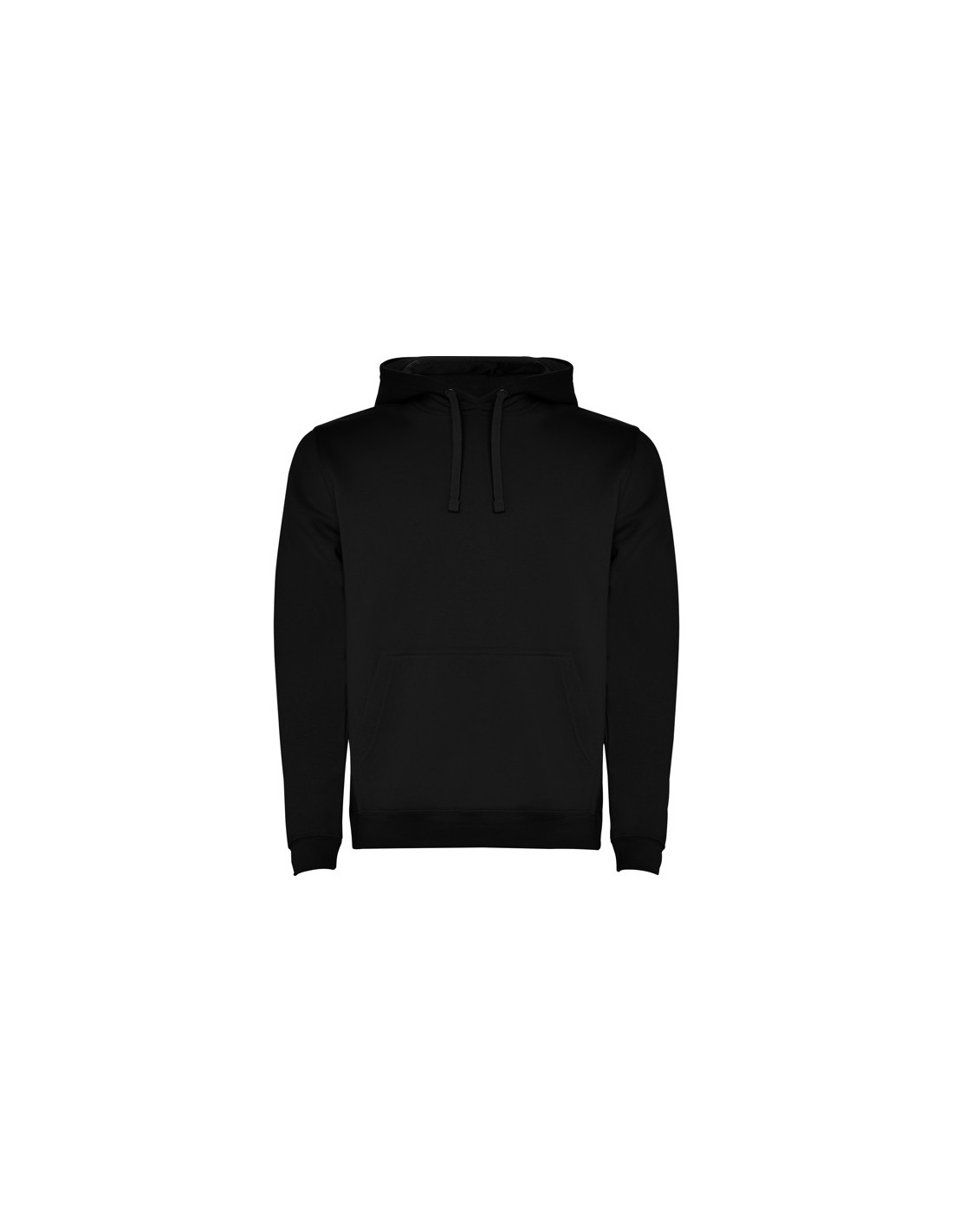 Sudadera con capucha de doble tejido, con cordón ajustable, en acabados solido y bicolor. Cubrecosturas en el cuello y bolsillo canguro. Punto canalé con elastano 1x1 en puños y cintura. Modelo de niño sin cordón.