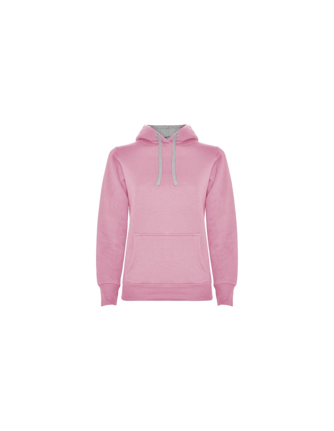 Sudadera entallada de corte femenino con capucha bicolor de doble tejido, con cordón contrastado ajustable, cubrecosturas en el cuello y bolsillo canguro. Punto canalé con elastano 1x1 en puños y cintura. Detalle thumb slit – puños con apertura para el pulgar.