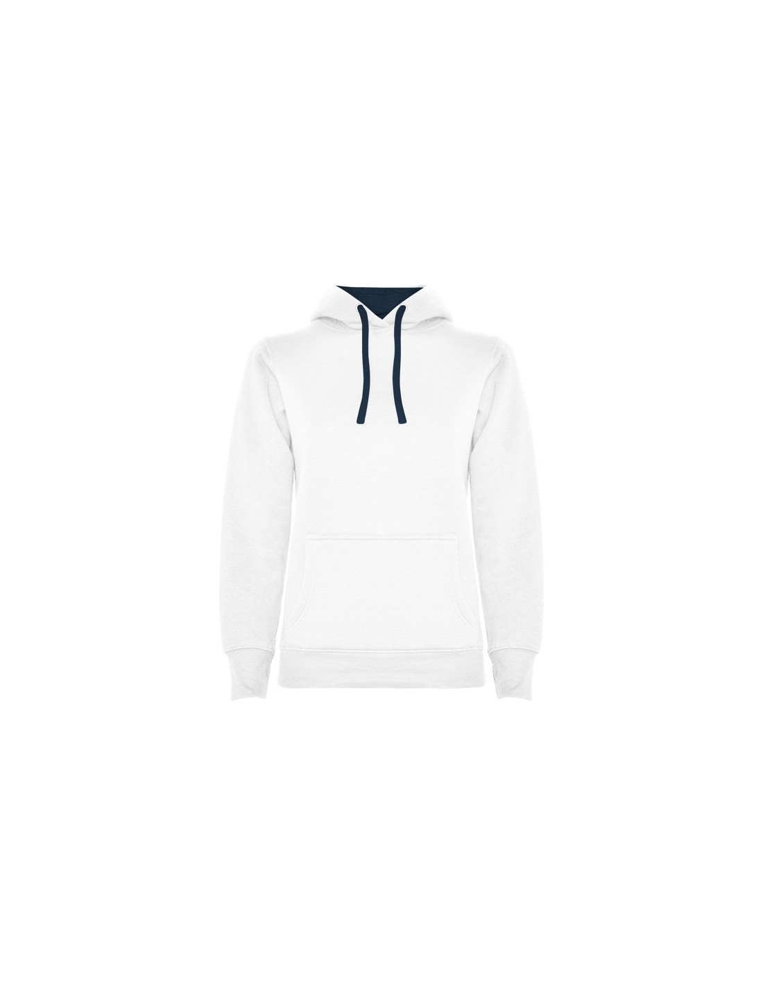 Sudadera entallada de corte femenino con capucha bicolor de doble tejido, con cordón contrastado ajustable, cubrecosturas en el cuello y bolsillo canguro. Punto canalé con elastano 1x1 en puños y cintura. Detalle thumb slit – puños con apertura para el pulgar.