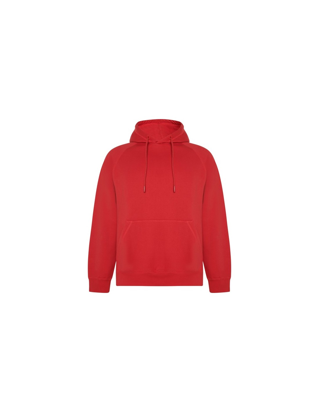 Sudadera con capucha Unisex en Algodón Orgánico Peinado y Poliéster Reciclado. Bolsillo Canguro. Capucha forrada de punto liso y cordones redondos ajustables , ojales bordados. cuello puños y cinturilla de punto canalé 2x1.