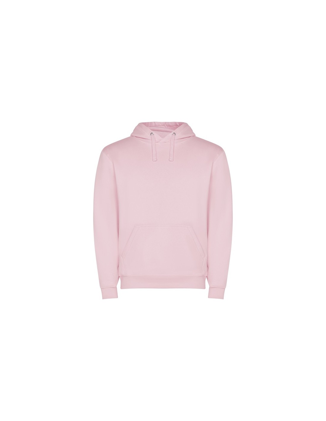 Sudadera capucha con bolsillo canguro y cordón plano ajustable. Puños y cinturilla con punto canalé 1x1 con elastano. Modelo de niño sin cordón.