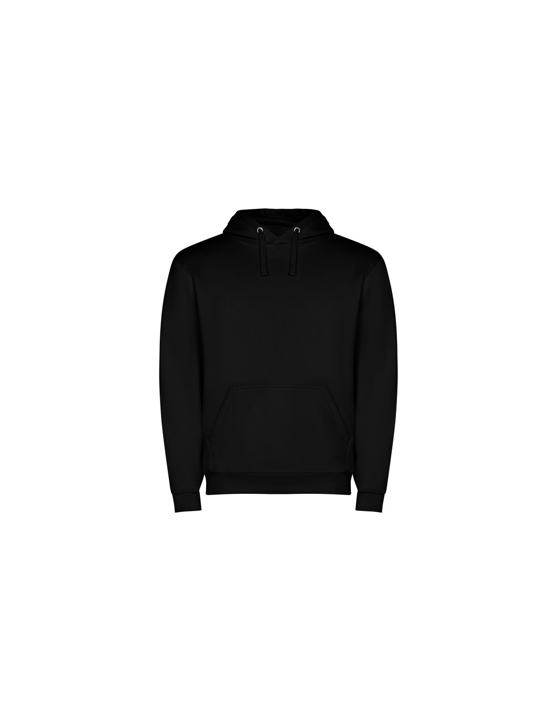 Sudadera capucha con bolsillo canguro y cordón plano ajustable. Puños y cinturilla con punto canalé 1x1 con elastano. Modelo de niño sin cordón.