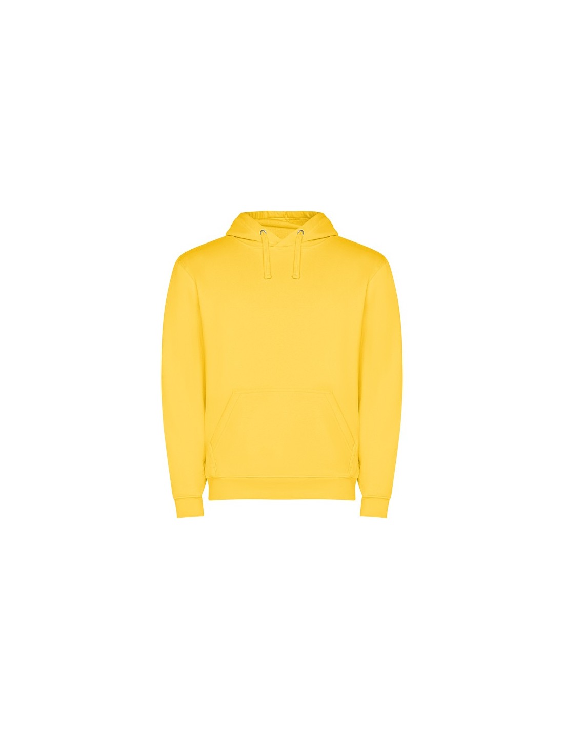 Sudadera capucha con bolsillo canguro y cordón plano ajustable. Puños y cinturilla con punto canalé 1x1 con elastano. Modelo de niño sin cordón.