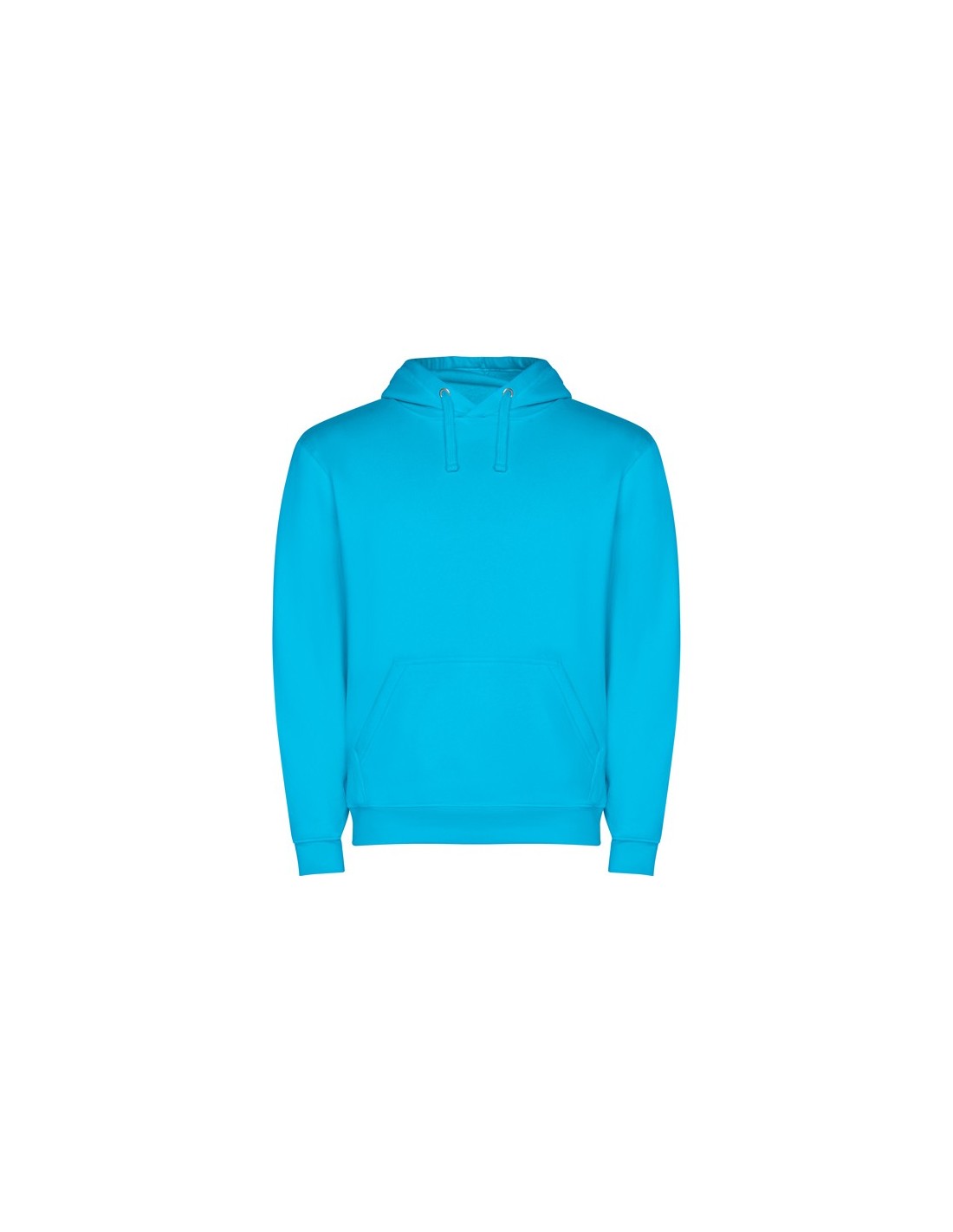 Sudadera capucha con bolsillo canguro y cordón plano ajustable. Puños y cinturilla con punto canalé 1x1 con elastano. Modelo de niño sin cordón.