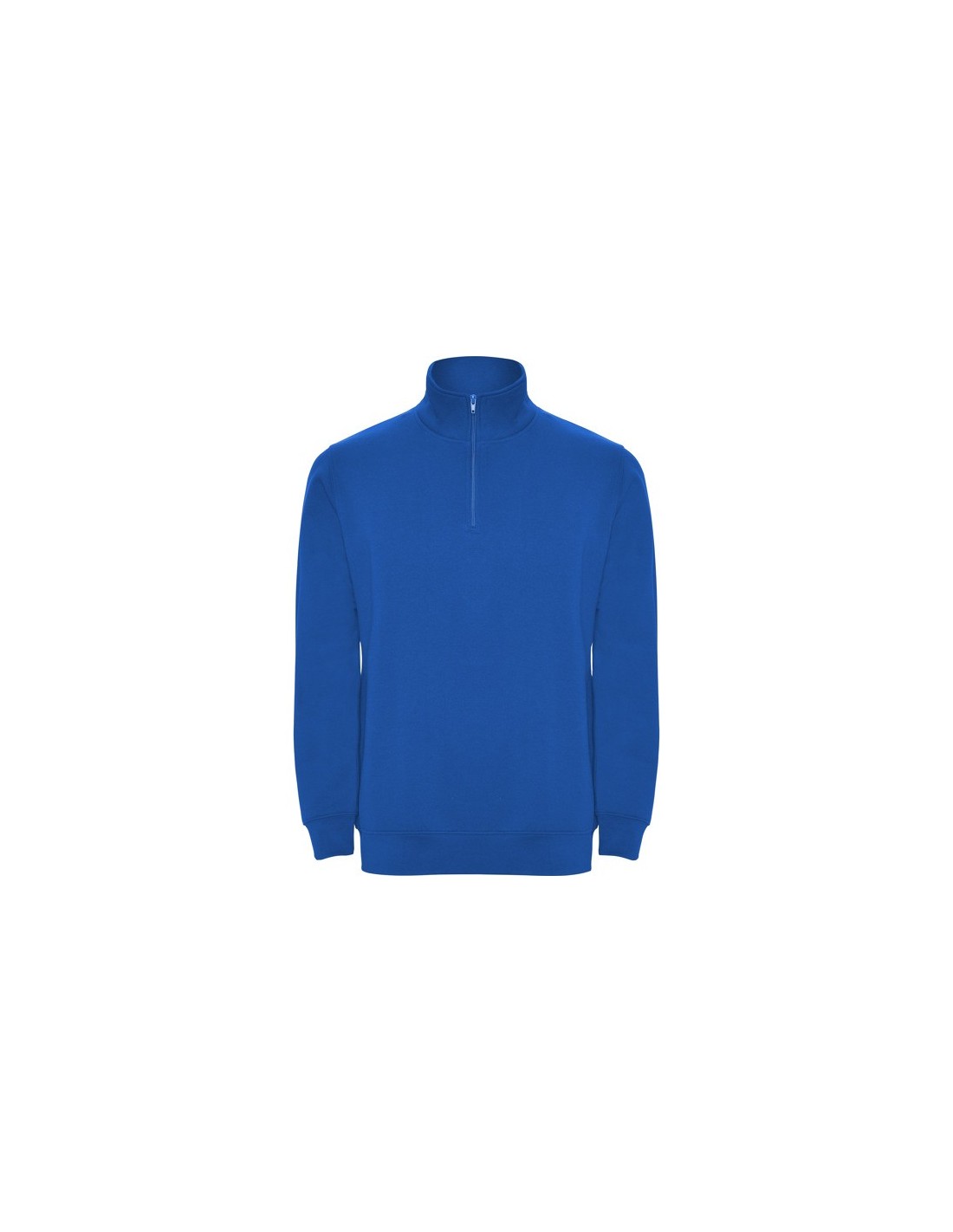 Sudadera con media cremallera a tono y cuello alto. Vista interior del cuello en el mismo tono. Cubrecosturas reforzado en el interior del cuello. Punto canalé 1x1 en puños y cintura.