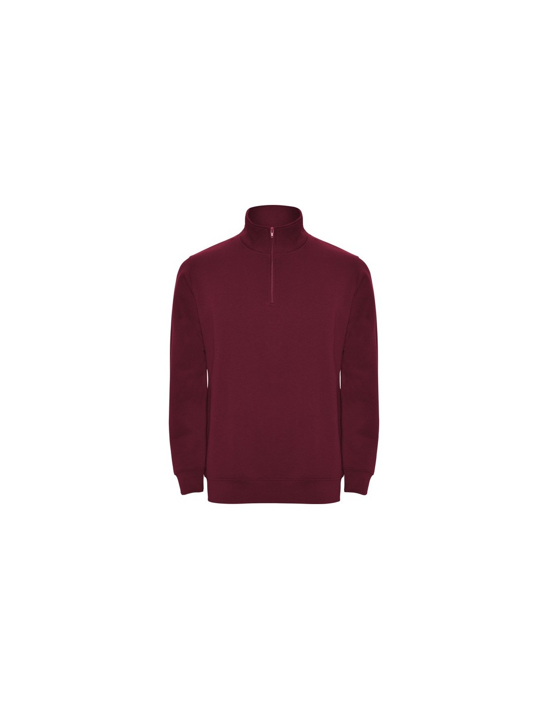 Sudadera con media cremallera a tono y cuello alto. Vista interior del cuello en el mismo tono. Cubrecosturas reforzado en el interior del cuello. Punto canalé 1x1 en puños y cintura.