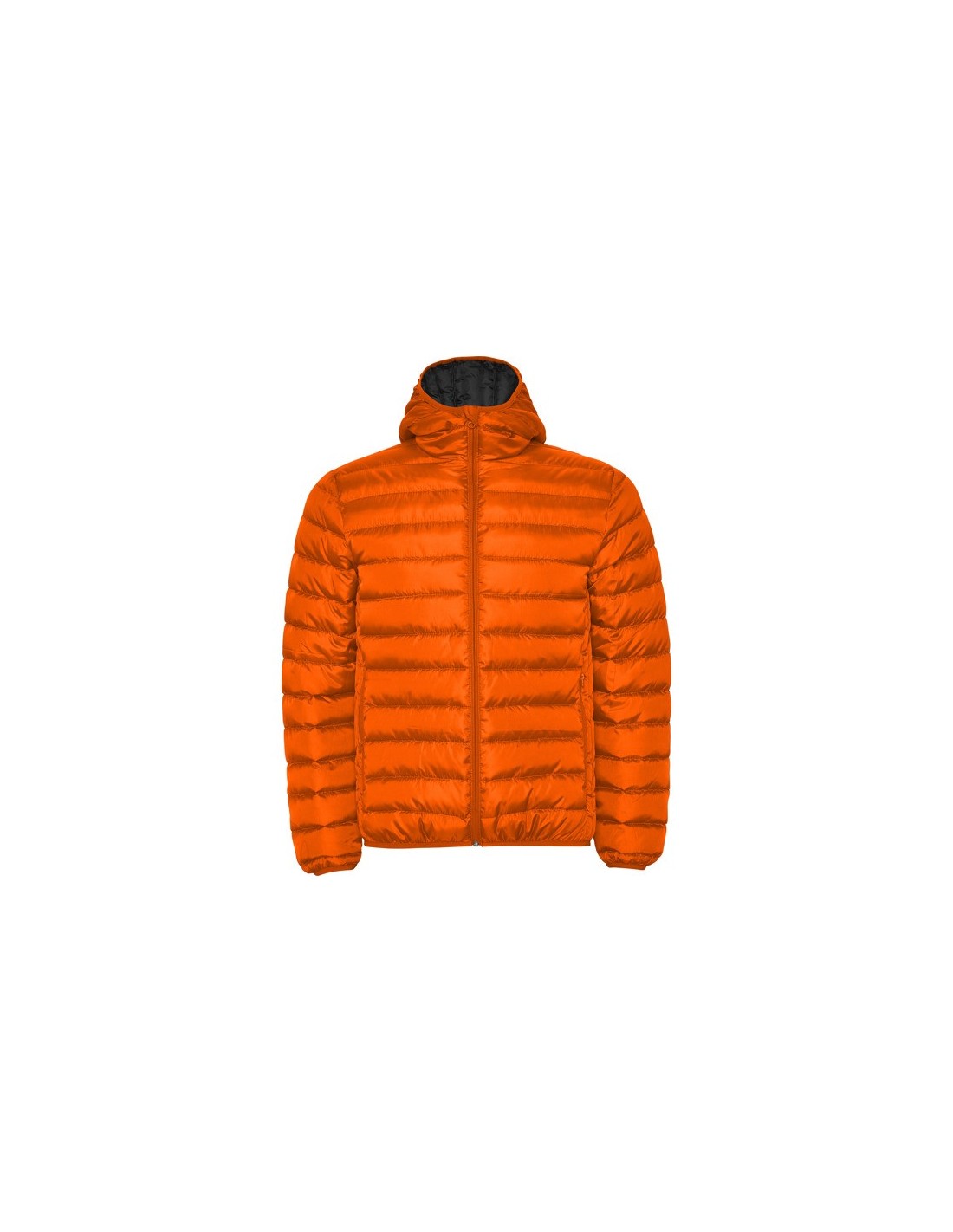 Chaqueta de hombre acolchada con relleno tacto pluma y capucha fija ajustada. ·Cremallera invertida a tono con protector de barbilla.