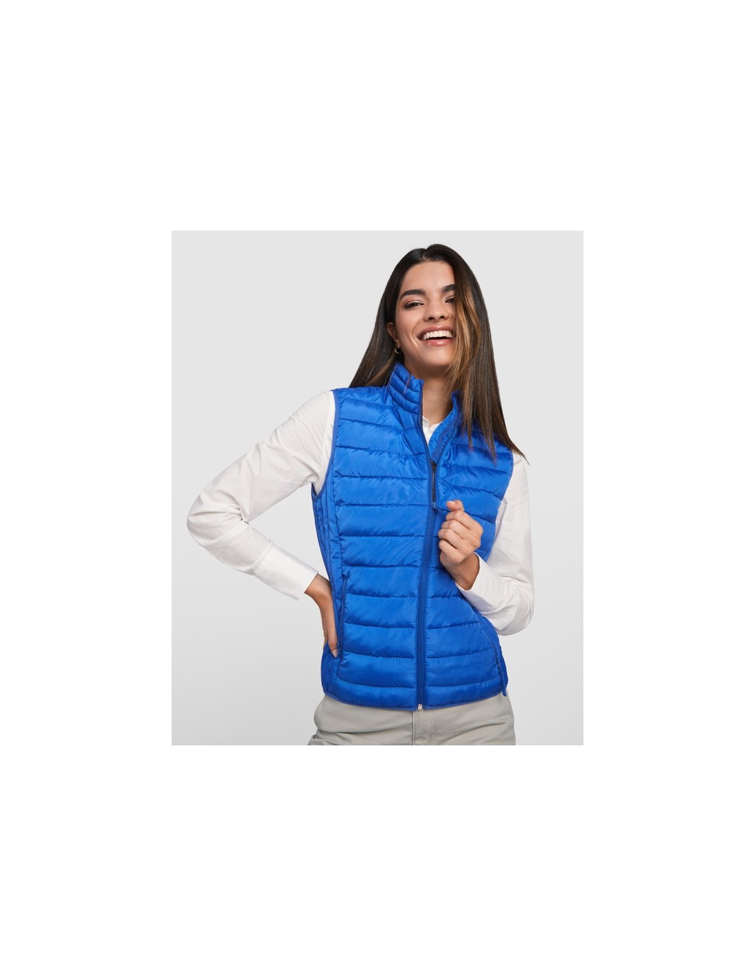 Chaleco de mujer acolchado tacto pluma. Cremalleras invertidas a tono, y dos bolsillos frontales con cremalleras. Forro interior a contraste. Ribete elástico a tono en el bajo. Prenda ligera y plegable. Corte entallado.