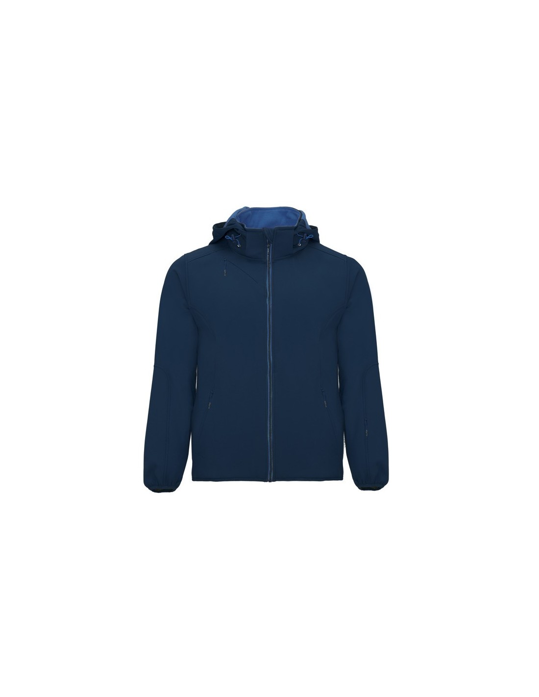Softshell compuesto de 2 capas con corte deportivo. Cremallera central a contraste con protector de barbilla y tirador. Forro interior en tejido micropolar a contraste. Cuenta con bolsillo exterior en pecho derecho con cremallera invisible con forma diagonal, dos bolsillos exteriores laterales con cremallera invisible, y un bolsillo en manga izquierda. Ribete elástico a tono en puños y bajo. Capucha extraible con forro micropolar a constraste.