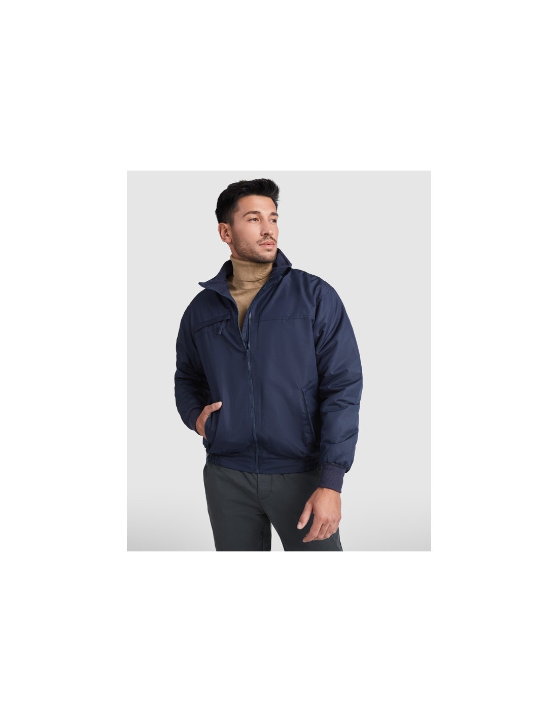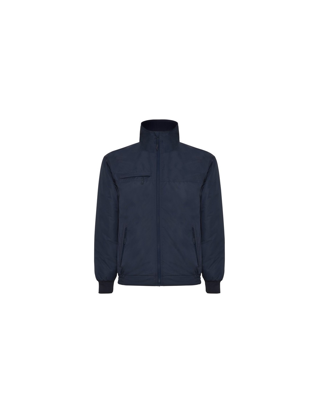 Chaqueta acolchada impermeable. · Cuello alto con interior forrado en micropolar. · Cremallera central inyectada al tono con protector de barbilla y tirador. · Un bolsillo en el pecho y dos laterales con cremallera y solapa. · Puños ajustables en canalé 1x1. · Acceso interior para marcaje.