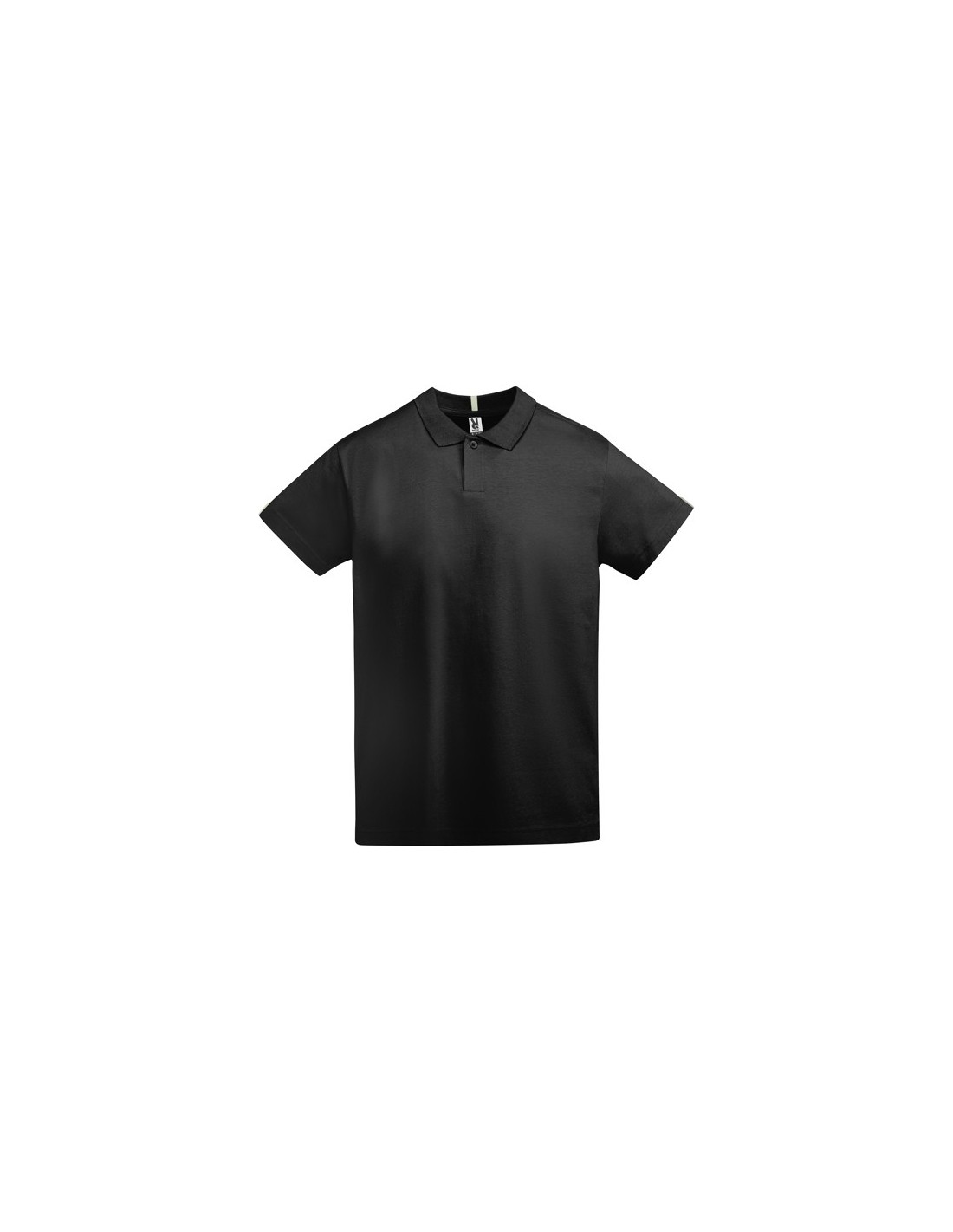 Polo de manga corta en tejido punto liso. Cuello y ribete de mangas en canalé 1x1. Tapeta con 1 botón. Cubrecosturas reforzado en cuello. Aperturas laterales en el bajo. Detalle de cinta en forma de espiga a contraste de color en puños y cuello. Logo Relieve Roly a tono de la base del tejido.