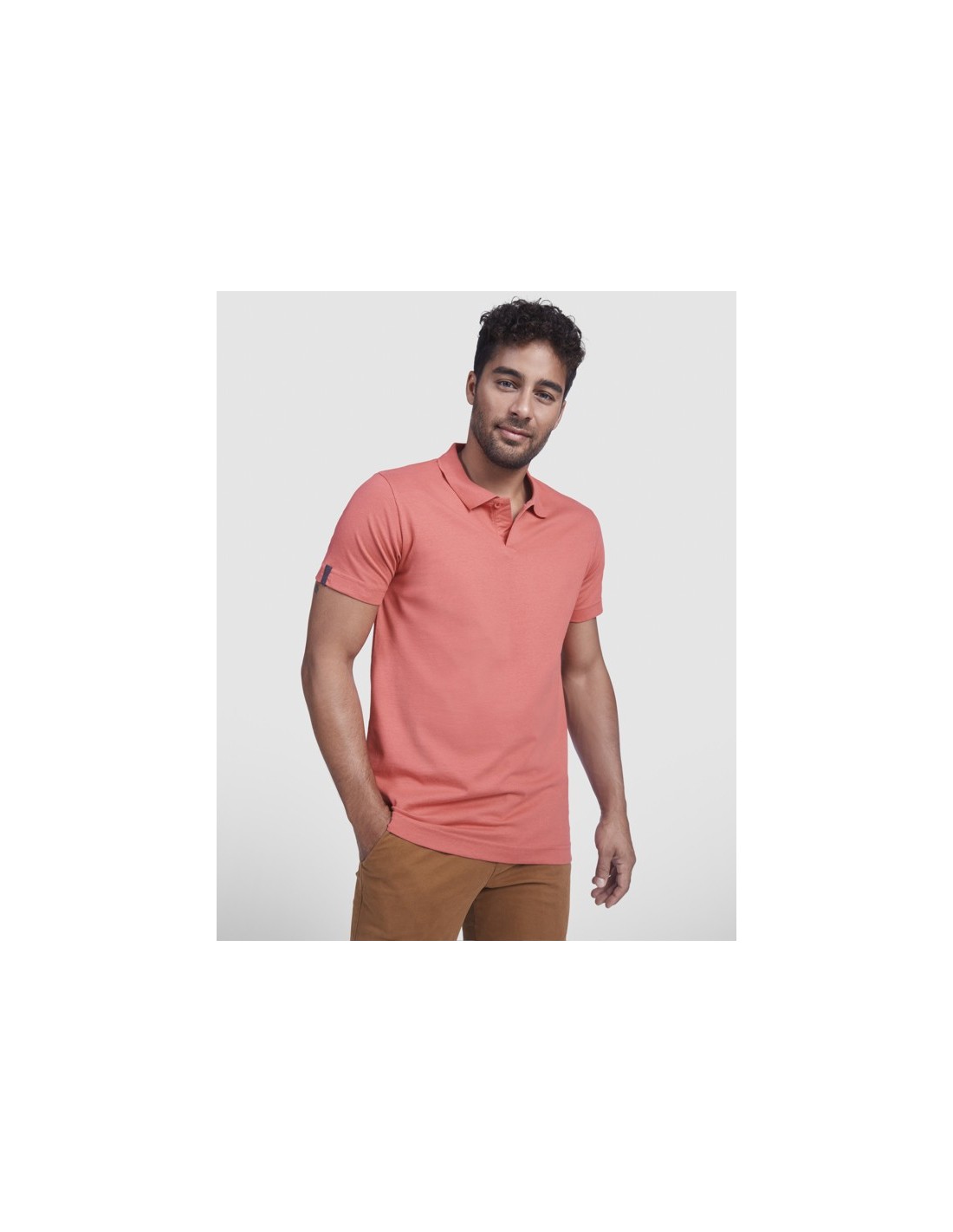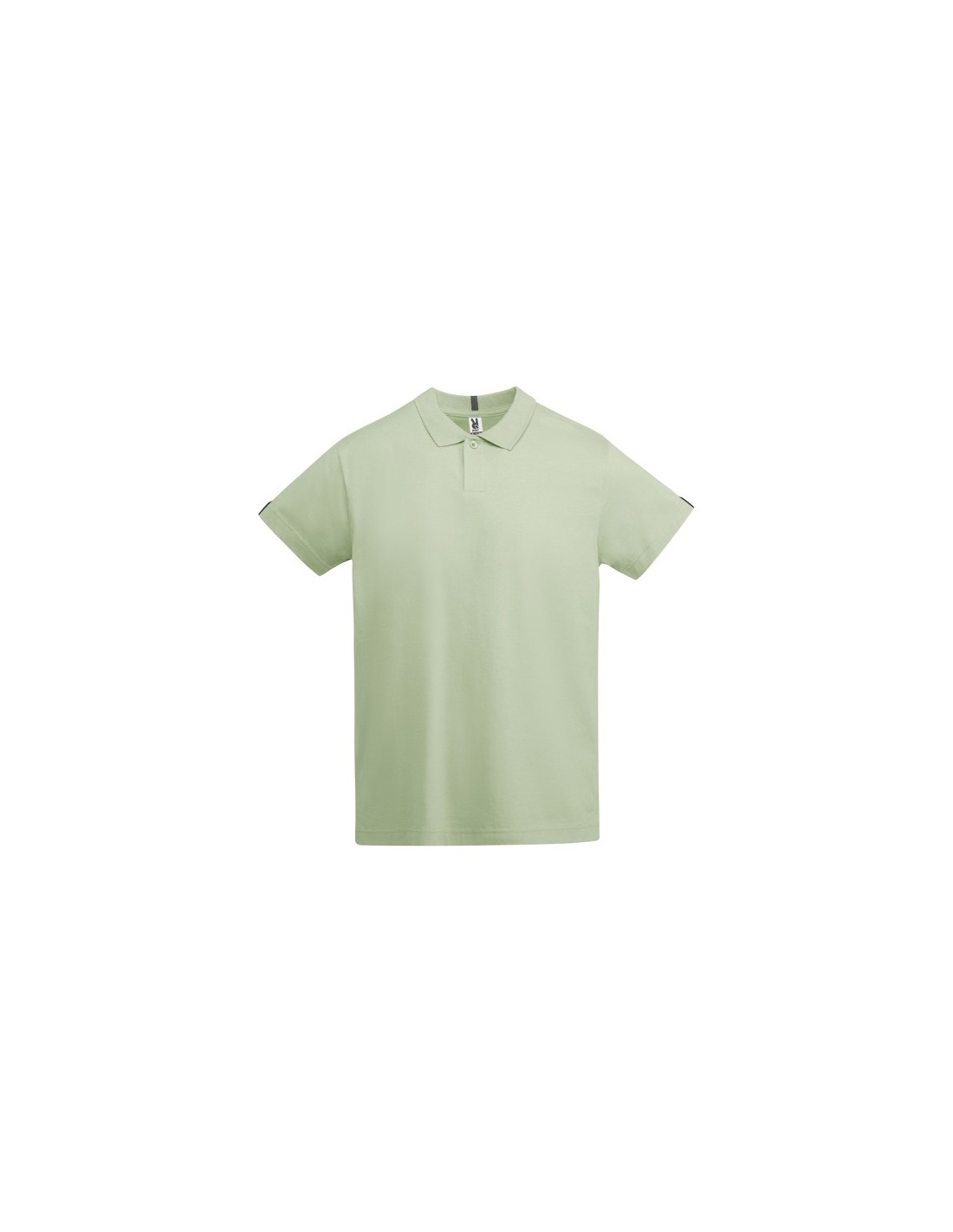 Polo de manga corta en tejido punto liso. Cuello y ribete de mangas en canalé 1x1. Tapeta con 1 botón. Cubrecosturas reforzado en cuello. Aperturas laterales en el bajo. Detalle de cinta en forma de espiga a contraste de color en puños y cuello. Logo Relieve Roly a tono de la base del tejido.