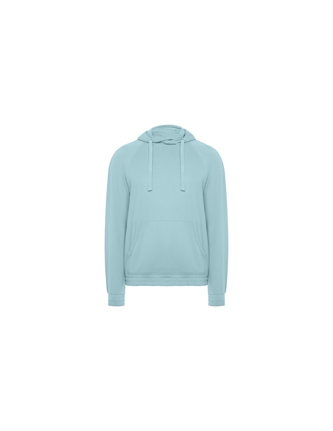 Sudadera con capucha unisex. Bolsillo canguro. Cordones planos con ojales bordados. Puños y cintura en tejido principal. Detalle de costura con relieve en mangas.