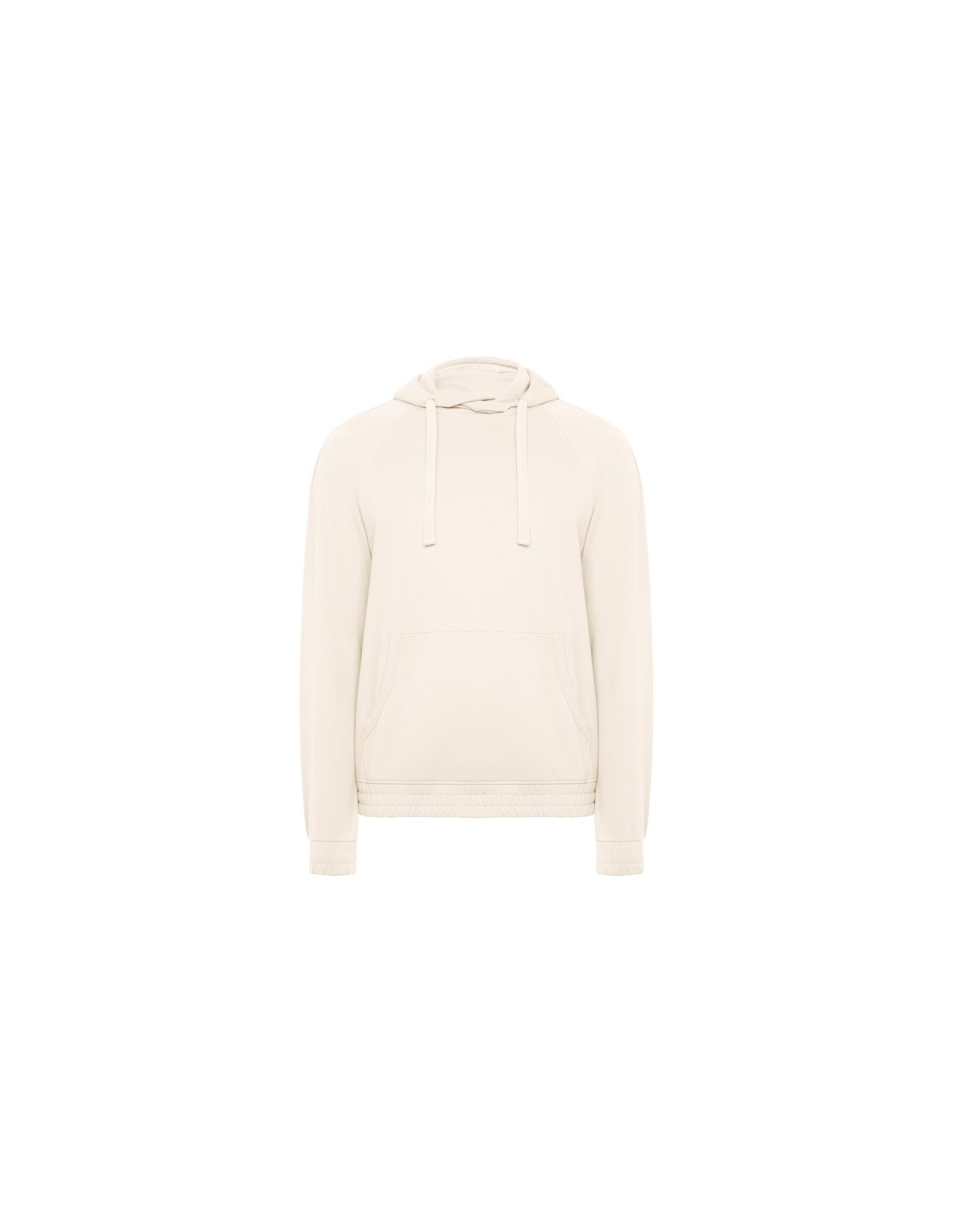 Sudadera con capucha unisex. Bolsillo canguro. Cordones planos con ojales bordados. Puños y cintura en tejido principal. Detalle de costura con relieve en mangas.