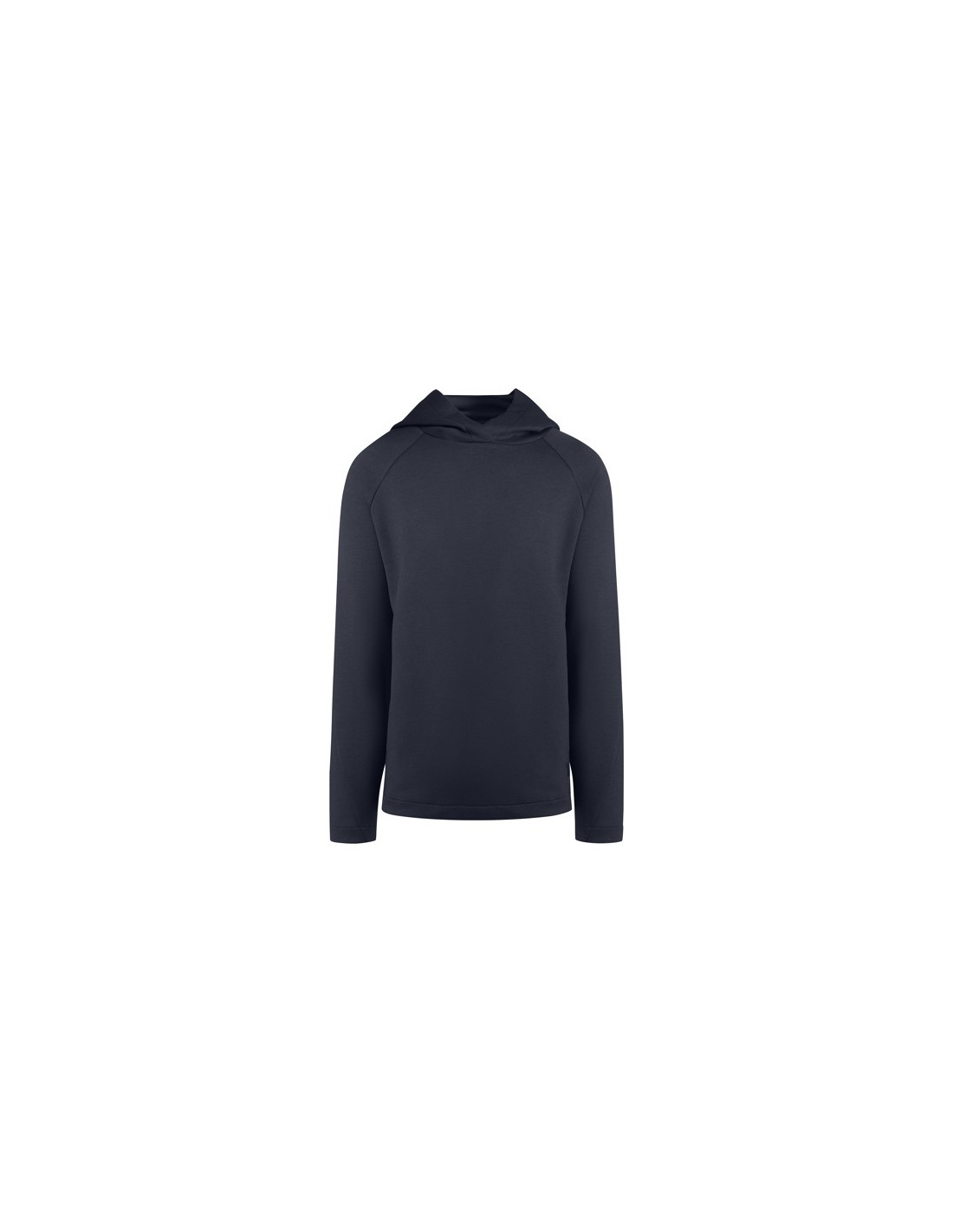 Sudadera con capucha en tejido ligero. Capucha con pinza de una sola pieza. Costuras laterales y costuras de mangas adelantadas. Bolsillos integrados en costuras laterales. Ajustador de PVC con goma elástica en la costura de la cintura. Logo Roly al tono en la manga izquierda.