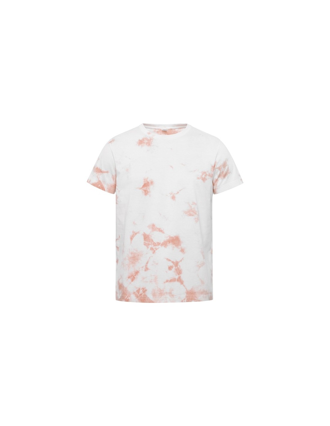 Camiseta tubular de manga corta unisex efecto Tie-Dye. Cuello redondo en canalé 1x1 con cubre costuras en cuello. El acabado y la tonalidad de esta prenda puede variar dentro de un mismo tono.