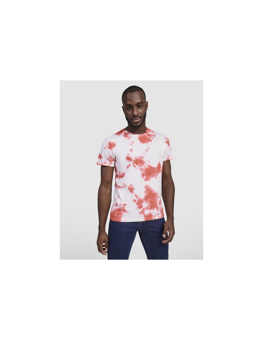 Camiseta tubular de manga corta unisex efecto Tie-Dye. Cuello redondo en canalé 1x1 con cubre costuras en cuello. El acabado y la tonalidad de esta prenda puede variar dentro de un mismo tono.
