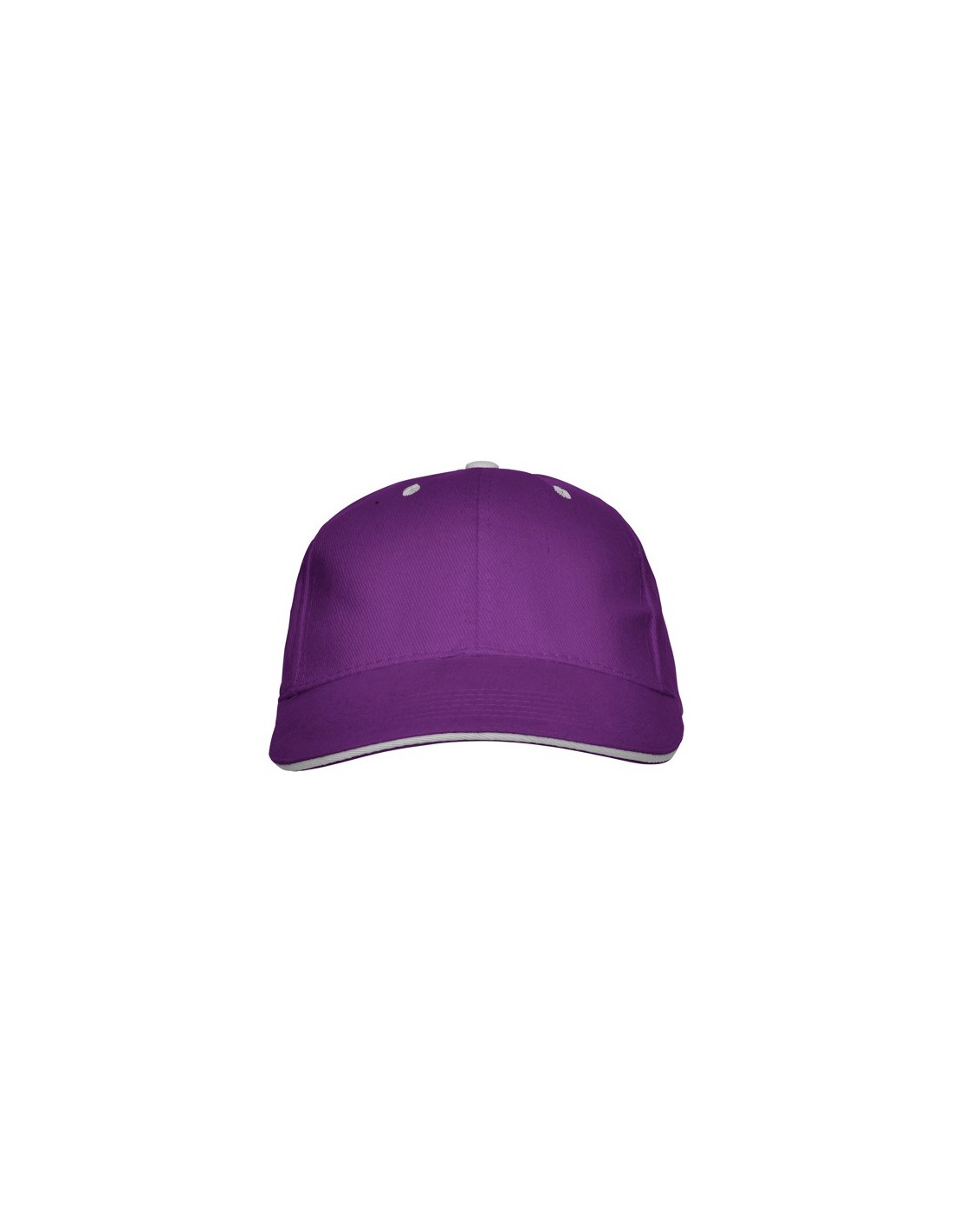 Gorra 6 paneles con sándwich a contraste. 6 orificios de ventilación bordados a contraste. 6 líneas pespunte en visera. Cinta antisudoral en el interior. Cierre velcro.
