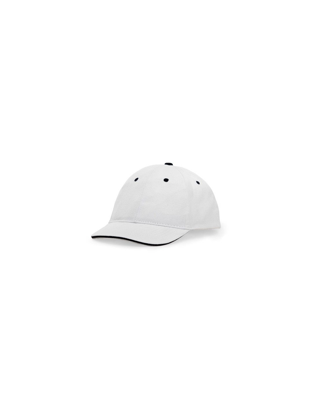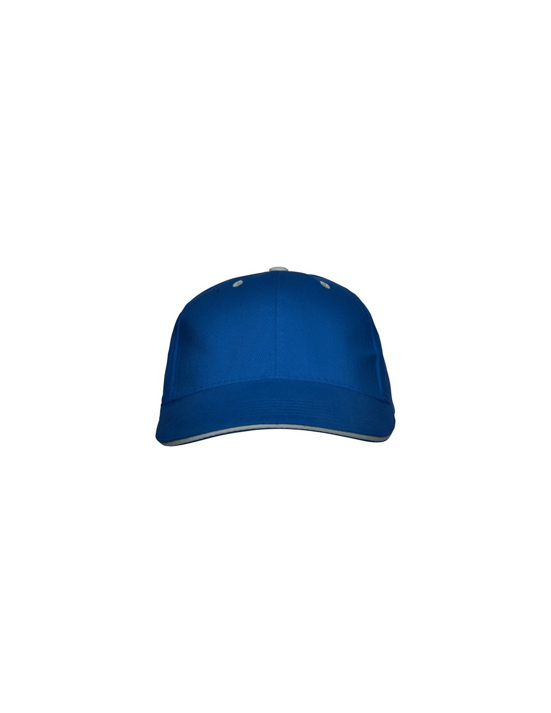 Gorra 6 paneles con sándwich a contraste. 6 orificios de ventilación bordados a contraste. 6 líneas pespunte en visera. Cinta antisudoral en el interior. Cierre velcro.