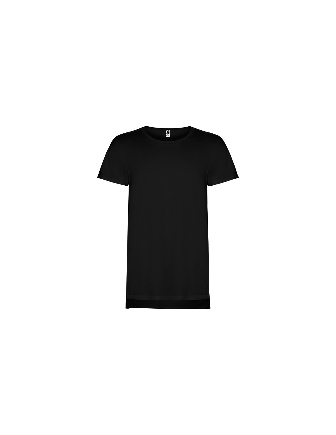 Camiseta de manga corta y talle extra largo, con cuello redondo de dos capas con elastano. Aperturas laterales en el bajo. El patronaje de la espalda es ligeramente más largo que el delantero.