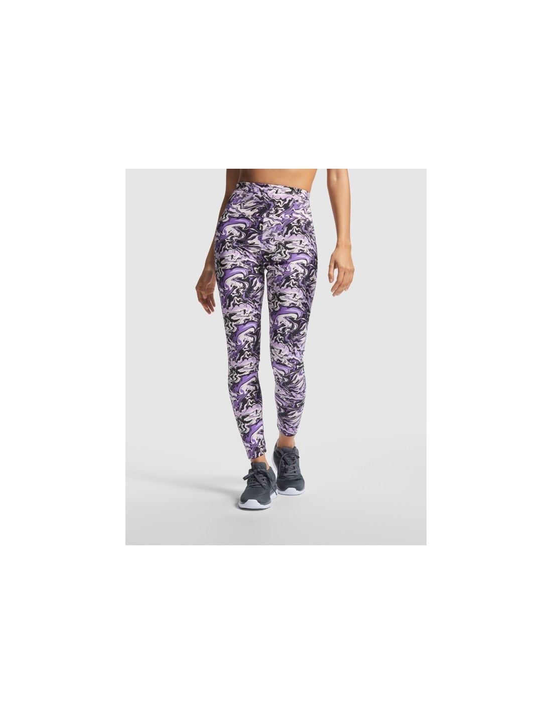 Malla tobillera deportiva de mujer estampada. Cintura alta ajustable. Bolsillo trasero en cinturilla con banda reflectante.