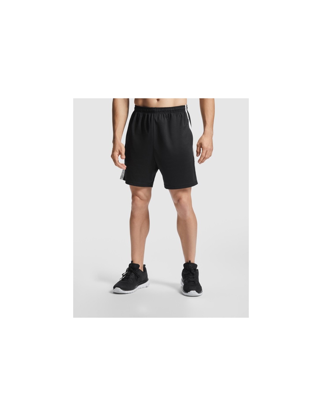 Bermuda corta con bolsillos laterales con cremalleras. Cinturilla elástica con cordón interior cruzado a contraste. Banda lateral a contraste.
