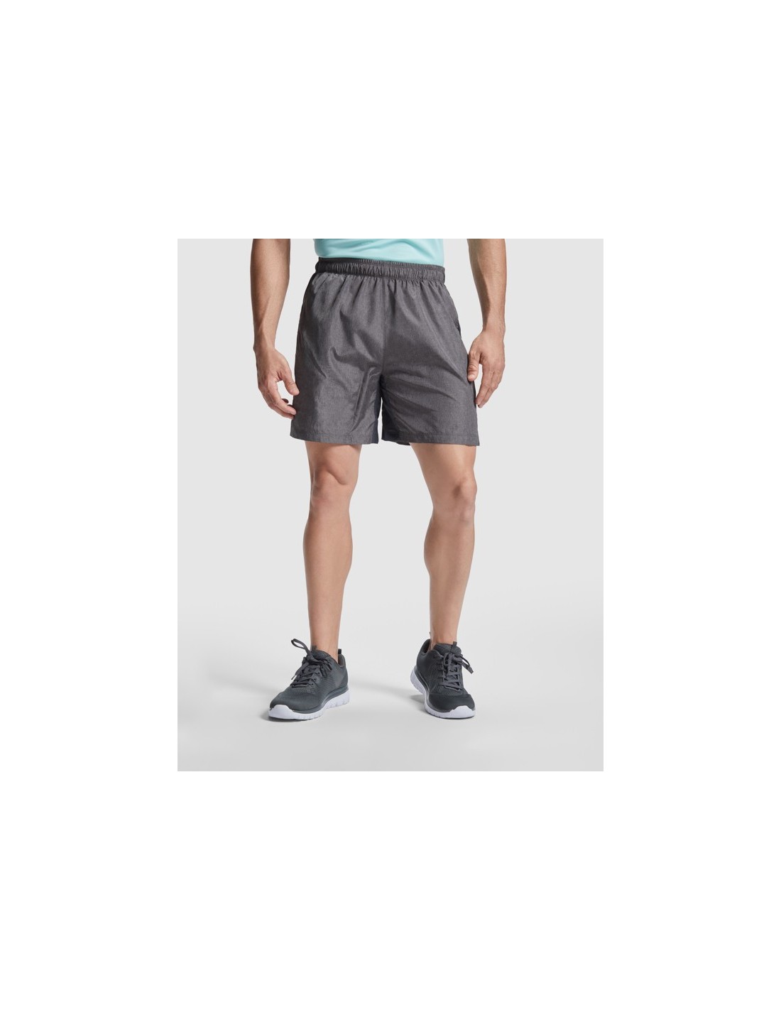 Bermuda con dos tejidos y slip interior. Cinturilla elástica con cordón interior cruzado a contraste. Banda lateral e interior de la pierna en tejido transpirable. Dos bolsillos laterales. Apertura lateral en el bajo con forma asimétrica.