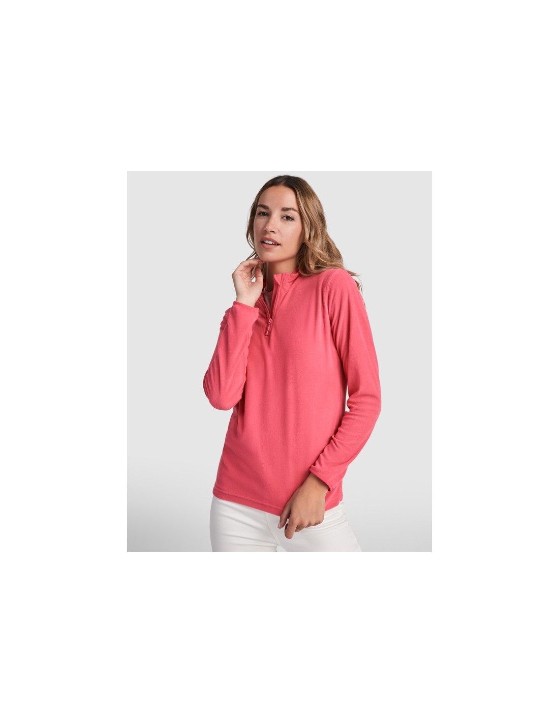 Micropolar con media cremallera en cuello y protector de barbilla. Puños con ribete elástico a tono. Corte entallado.