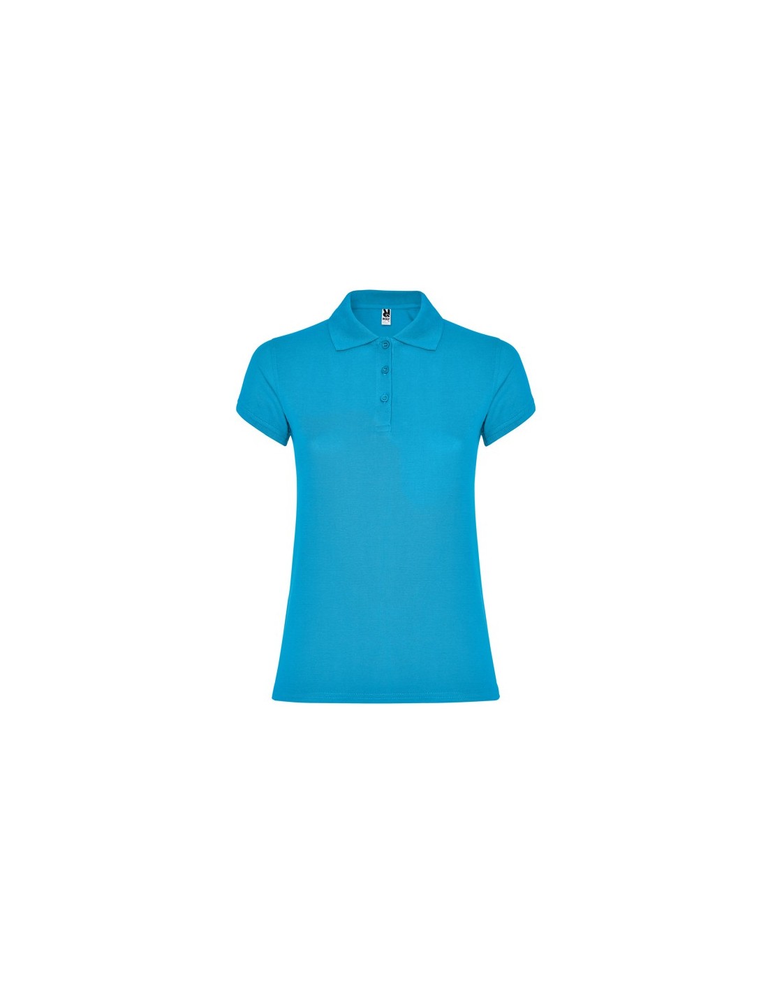 Polo de mujer de manga corta. Cubrecosturas reforzado en el interior del cuello. Cuello y ribete de manga acanalado. Costuras laterales y corte ajustado. Tapeta fina con tres botones. Aperturas en los laterales del bajo.