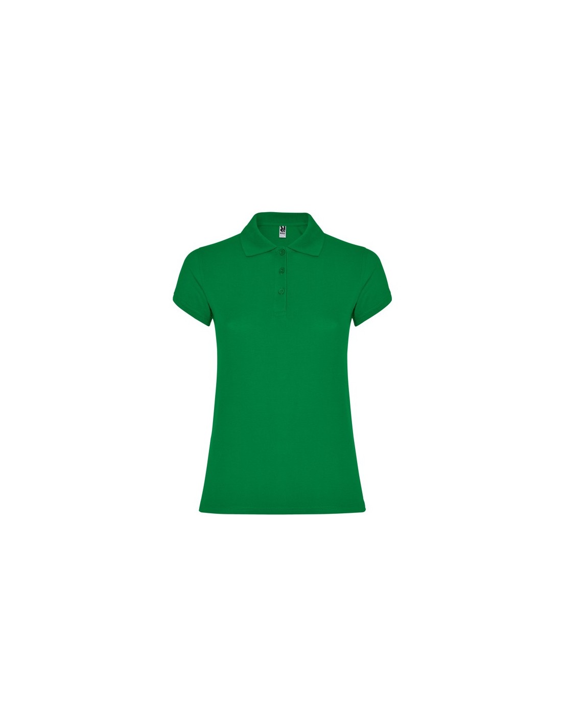 Polo de mujer de manga corta. Cubrecosturas reforzado en el interior del cuello. Cuello y ribete de manga acanalado. Costuras laterales y corte ajustado. Tapeta fina con tres botones. Aperturas en los laterales del bajo.