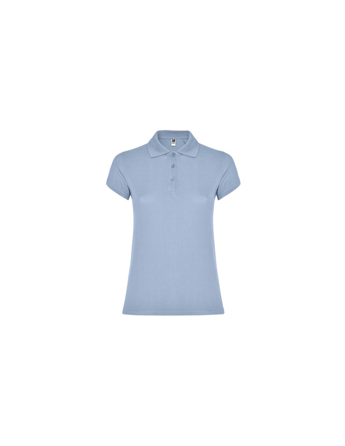 Polo de mujer de manga corta. Cubrecosturas reforzado en el interior del cuello. Cuello y ribete de manga acanalado. Costuras laterales y corte ajustado. Tapeta fina con tres botones. Aperturas en los laterales del bajo.