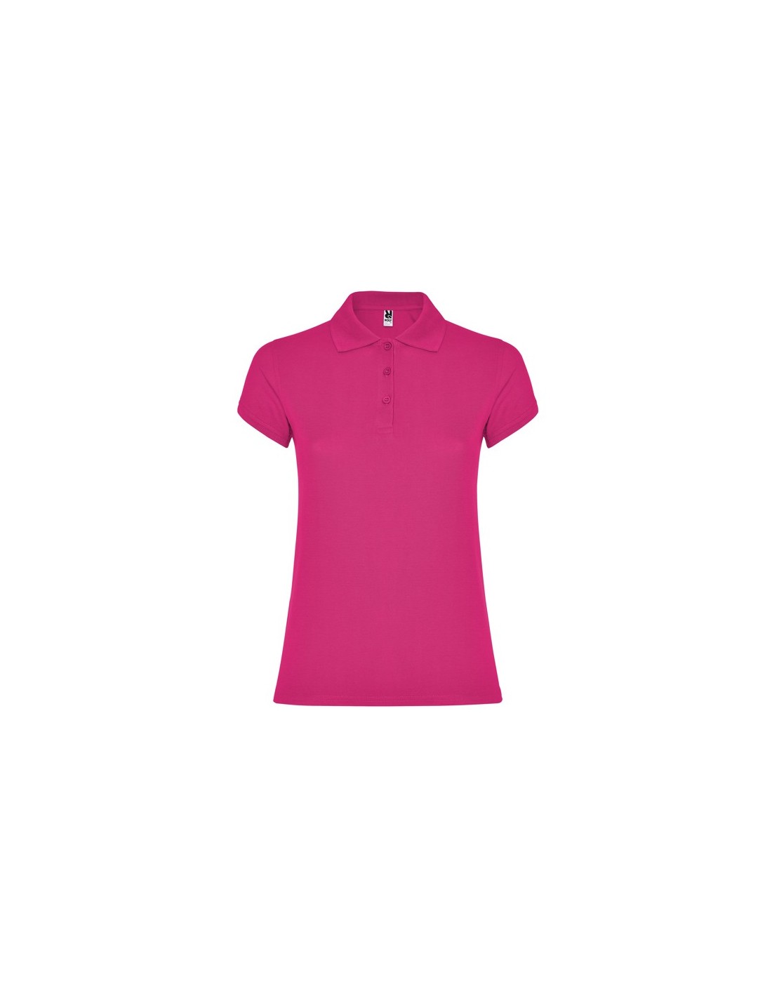 Polo de mujer de manga corta. Cubrecosturas reforzado en el interior del cuello. Cuello y ribete de manga acanalado. Costuras laterales y corte ajustado. Tapeta fina con tres botones. Aperturas en los laterales del bajo.