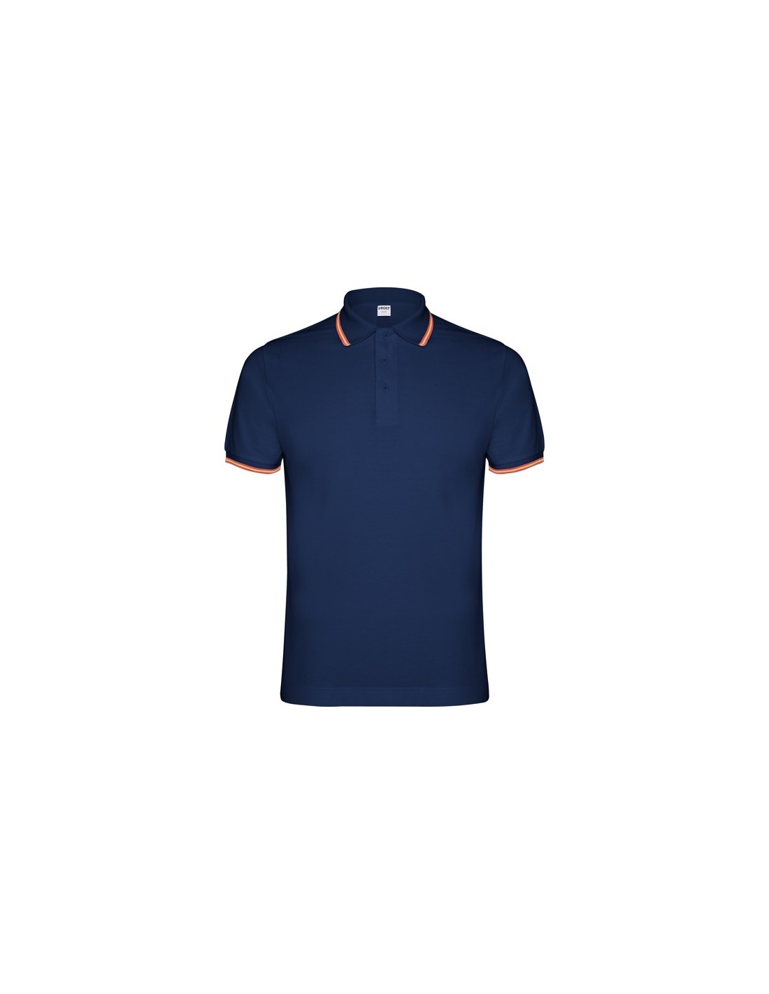 Polo de manga corta, cuello y bocamangas jackard con tapeta de tres botones. Cubrecosturas reforzado en cuello. Adorno de bandera bordado en la espalda.