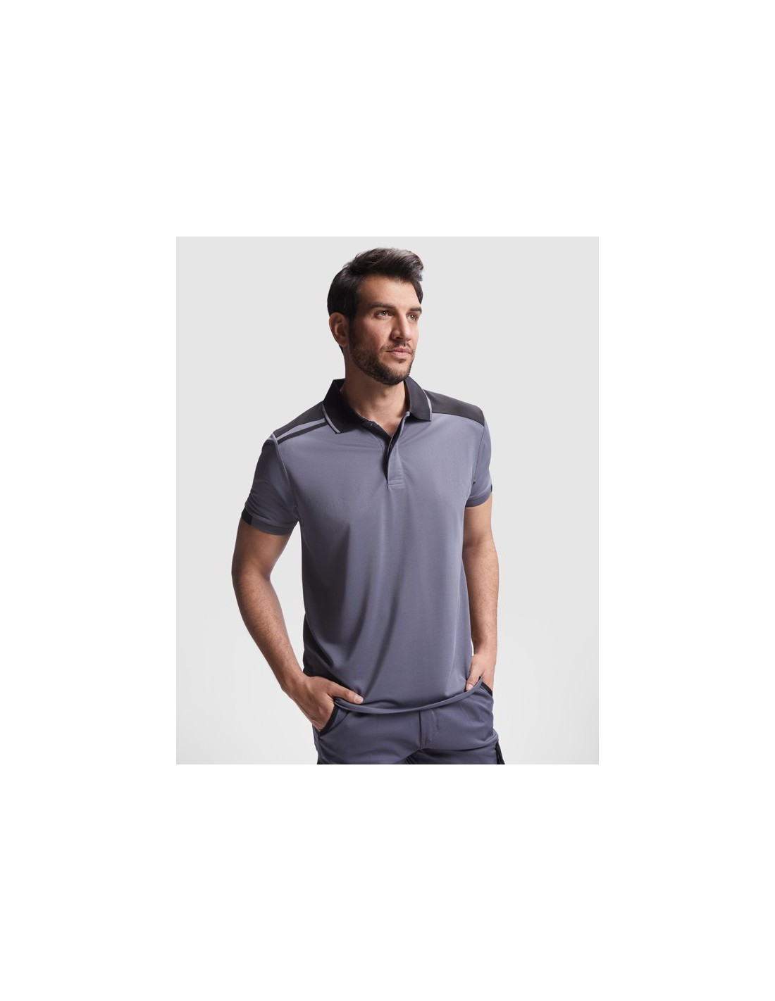Polo de manga corta antibacteriano con colores combinados.
