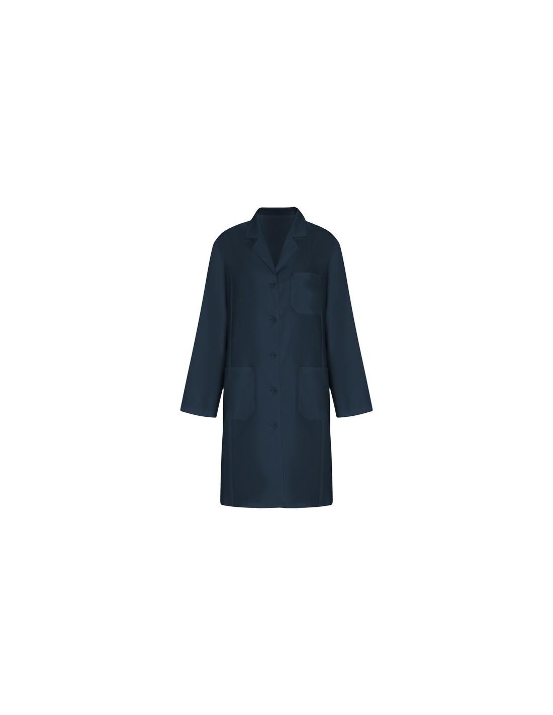 Bata de servicios de manga larga entallada. · Cuello con solapa. · Apertura central con 5 botones a tono. · Un bolsillo en pecho y dos laterales. · Cinturilla trasera.
