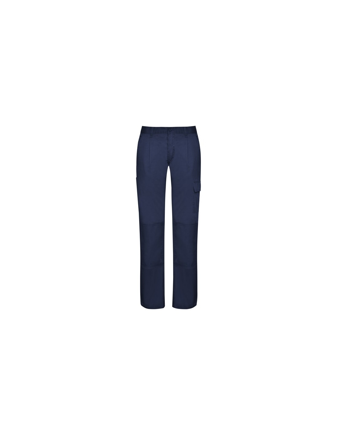 Pantalón largo laboral corte recto y tejido resistente. · Cinturilla ajustable elástica en parte trasera. · Dos bolsillos frontales. · Dos bolsillos funcionales traseros con solapa y cierre velcro. · Un bolsillo funcional lateral con solapa, cierre velcro y fuelle. · Bolsillo lateral derecho estrecho y sin solapa. · Refuerzo en entrepierna · Doble tejido en rodilleras.