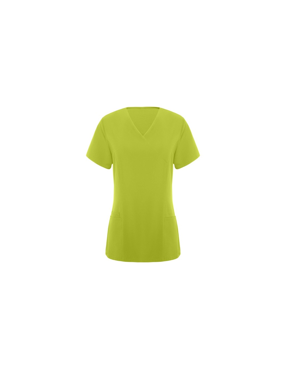 Casaca de servicios de manga corta de mujer. · Escote de pico cruzado. · Dos bolsillos franceses. · Aperturas laterales.