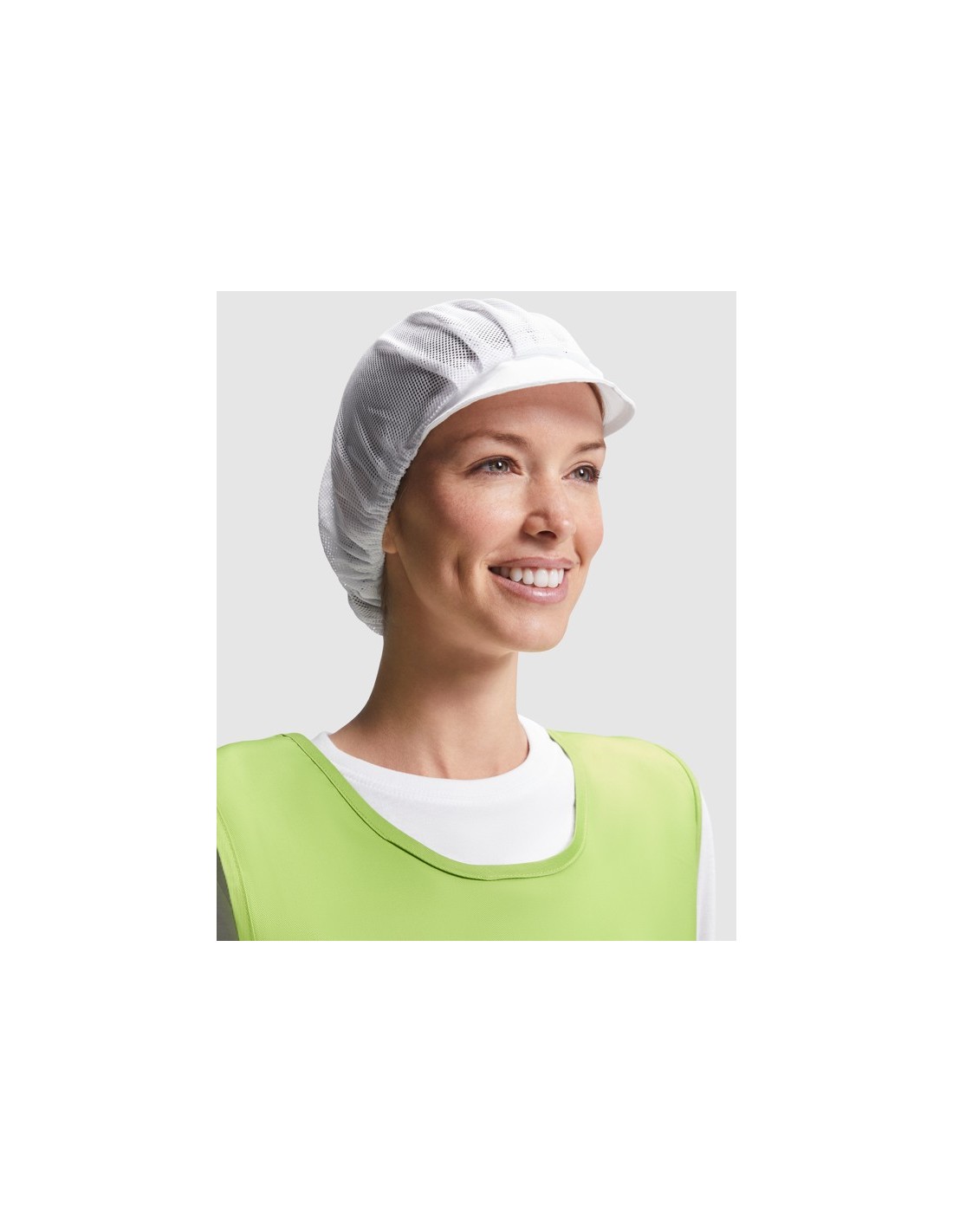 Cofia con rejilla recoge pelo y visera corta rígida.