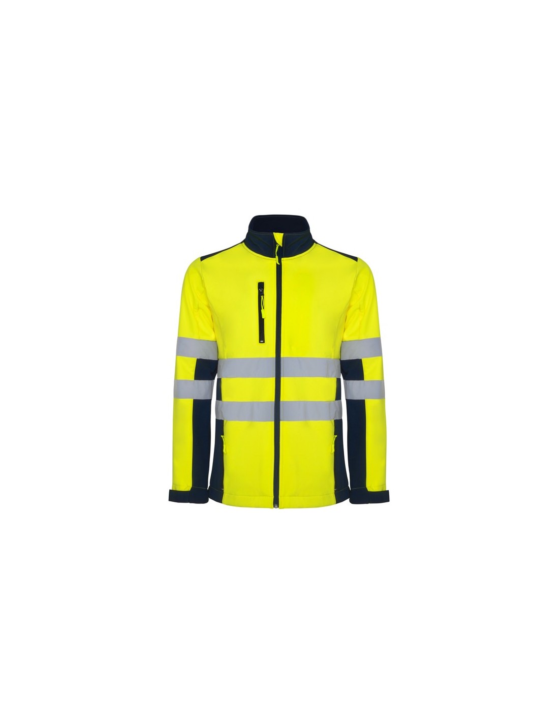 Softshell bicolor de alta visibilidad resistente al agua, tejido interior suave de alta capacidad térmica.