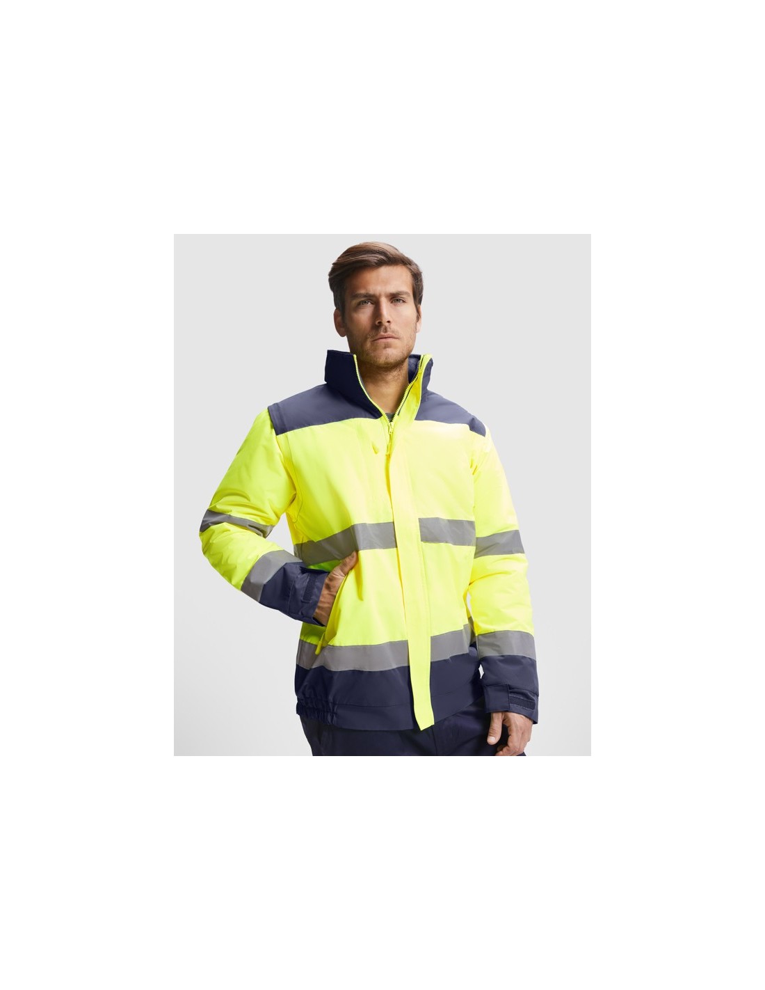 Parka acolchada de alta visibilidad combinada en dos colores.
