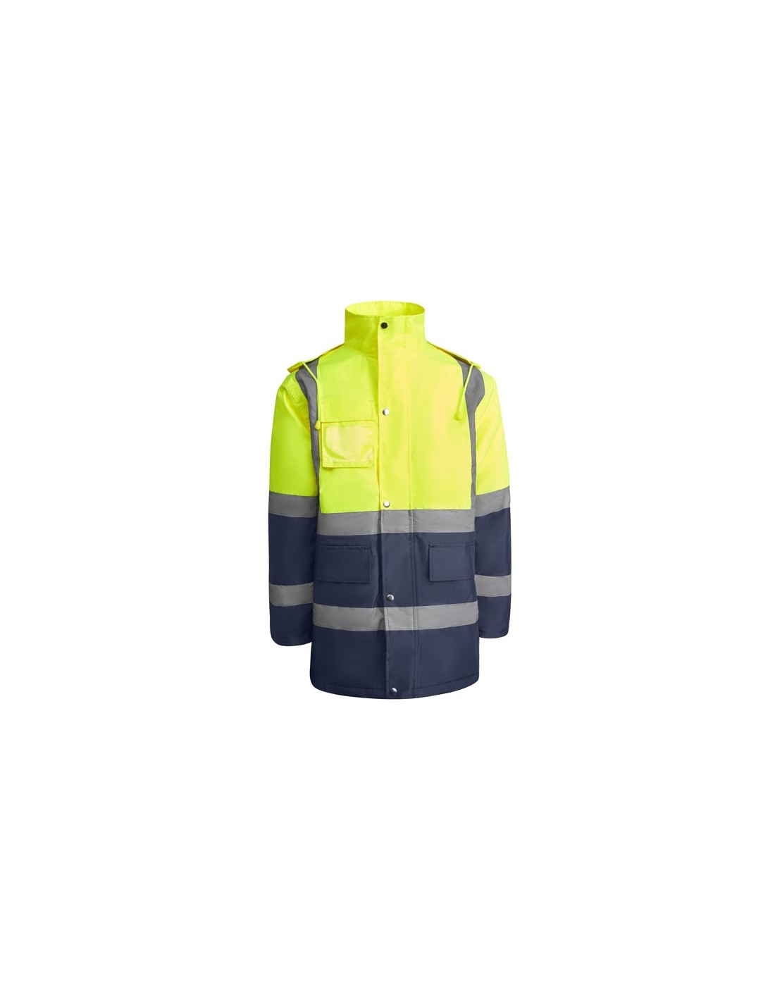 Parka acolchada de alta visibilidad combinada.